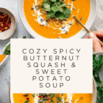 This Spicy Butternut Squash and Sweet Potato Soup is a cozy, flavorful dish perfect for chilly days. Creamy coconut milk and warming spices create a comforting blend that’s both nourishing and easy to make.