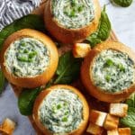 Spinach Dip with Water Chestnuts and Green Onions in a Sourdough Bread Bowl Recipe