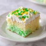 Keywords: St. Patrick’s Day dessert, poke cake, lime Jello cake, festive cake, white chocolate pudding cake, holiday dessert
