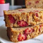 This bread has a mild, natural sweetness from the bananas, strawberries, and brown sugar, making it suitable for those who prefer a lightly sweetened quick bread rather than something very sugary.