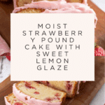 This Strawberry Pound Cake is a moist, tender cake bursting with fresh strawberries and topped with a thick, luscious strawberry glaze. Perfectly balanced with a hint of lemon, it combines the rich texture of sour cream and butter with the sweetness of fresh berries, making it a delightful treat for any occasion.