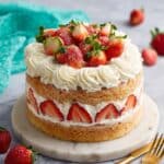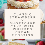Keywords: strawberry shortcake cake, layered cake, whipped cream frosting, fresh strawberries, gelatin stabilized frosting, vanilla cake, summer dessert