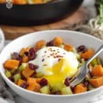 This Sweet Potato Hash with Sage Brown Butter is a flavorful and hearty dish perfect for breakfast or a cozy side. Sweet potatoes are cooked to tender perfection along with celery and shallots, then enriched with a nutty, aromatic sage-infused brown butter and a touch of dried cranberries for a subtle sweetness. The combination of savory and sweet elements creates a delicious balance that is both comforting and nutritious.