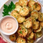 - Serve: Arrange the fried pickles on a serving platter alongside the chilled dipping sauce. Enjoy immediately for the best texture and flavor.