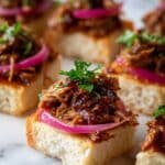 - Assemble the Sliders: Spread some BBQ sauce on the bottom half of each slider bun. Top with a generous portion of pulled pork, followed by coleslaw, pickles, and pickled red onions. Cover with the top bun and serve immediately.