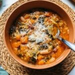 Keywords: Tuscan minestrone, Italian vegetable soup, orzo pasta soup, borlotti bean soup, healthy vegetable soup, vegetarian minestrone, Italian cuisine