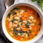 Keywords: white bean soup, vegetarian soup, Italian soup, kale soup, healthy soup, easy dinner recipe, creamy bean soup